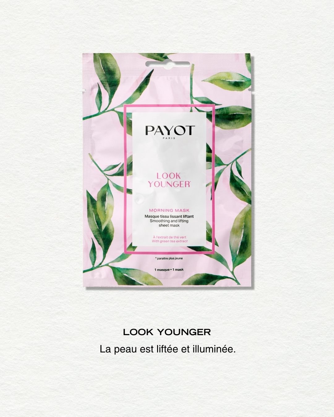 Formulé à partir d’extrait de thé vert reconnu pour contribuer à la préservation de l’élasticité de la peau, le masque Look Younger est idéal pour les peaux matures. Il lisse et lifte la peau instantanément et ravive l’éclat du teint.